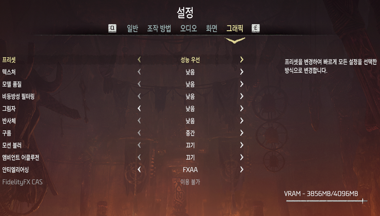 호라이즌 제로 던 PC판 프레임 향상시키기